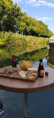 In St. Symphorien legen wir uns an die Seite von "Petra" (Manfred und Petra). Bei einem gemeinsamen Mittagessen tauscht man sich über allerlei Schifffahrts-Erfahrungen aus.