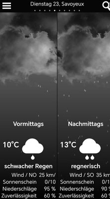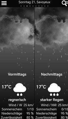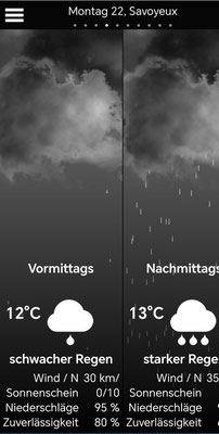 Das Wetter zeigt sich von der angenehmen Seite, allerdings nur bis am Samstag. Auf der Rückfahrt nach Savoyeux schüttet es in Strömen.