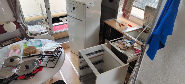 Während unserer Abwesenheit hat die Natur vom JLB Besitz ergriffen. In der Ankerkiste haben es sich die Wespen gemütlich gemacht. Von der Spinnenpopulation wollen wir gar nicht weiter reden.... ;-((